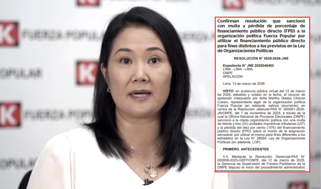 El JNE confirmó la sanción contra Fuerza Popular, que consiste en una multa de 33 UIT, que