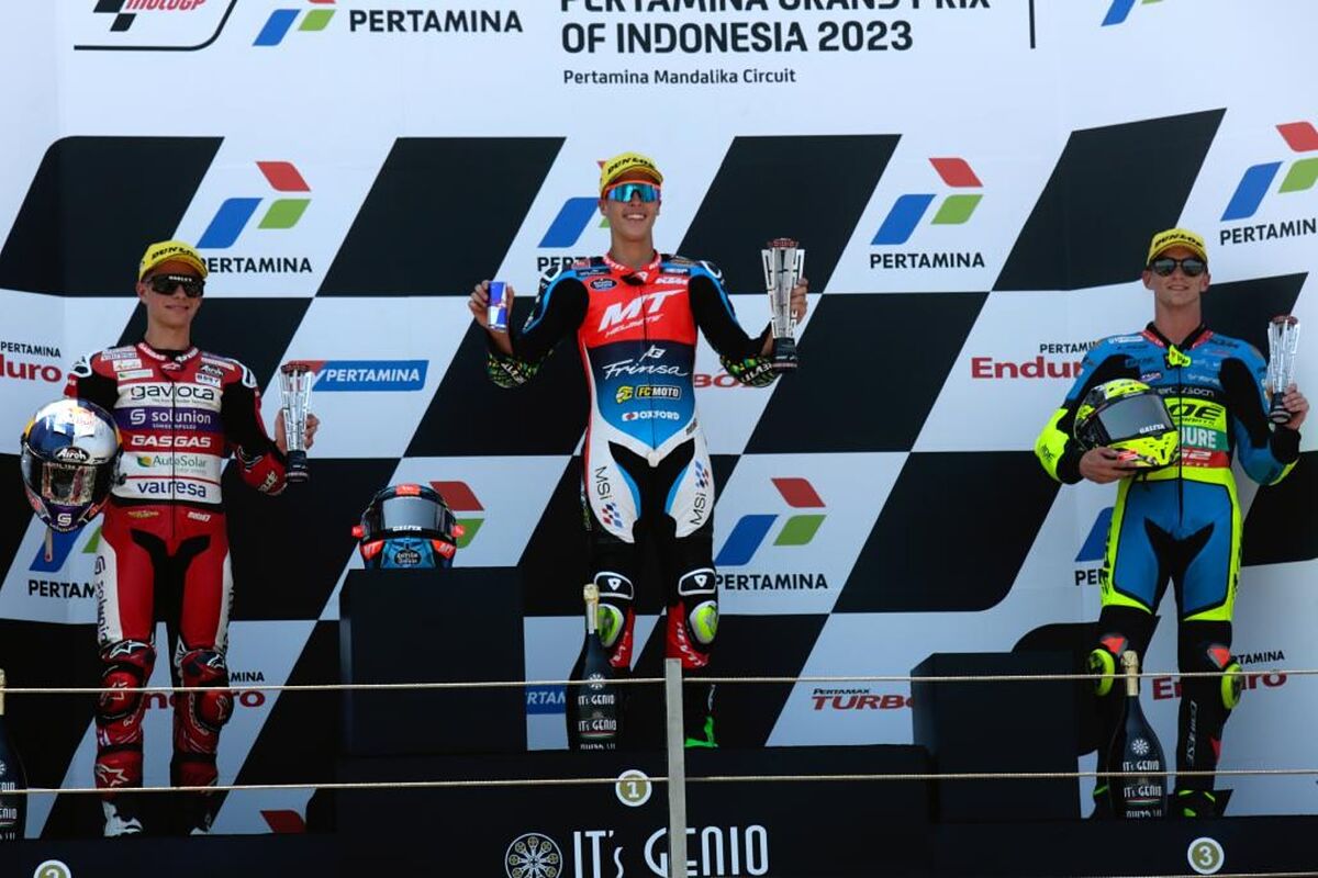 Diogo Moreira gan la carrera de Moto3 en Indonesia. Es la primera de su vida. No venca