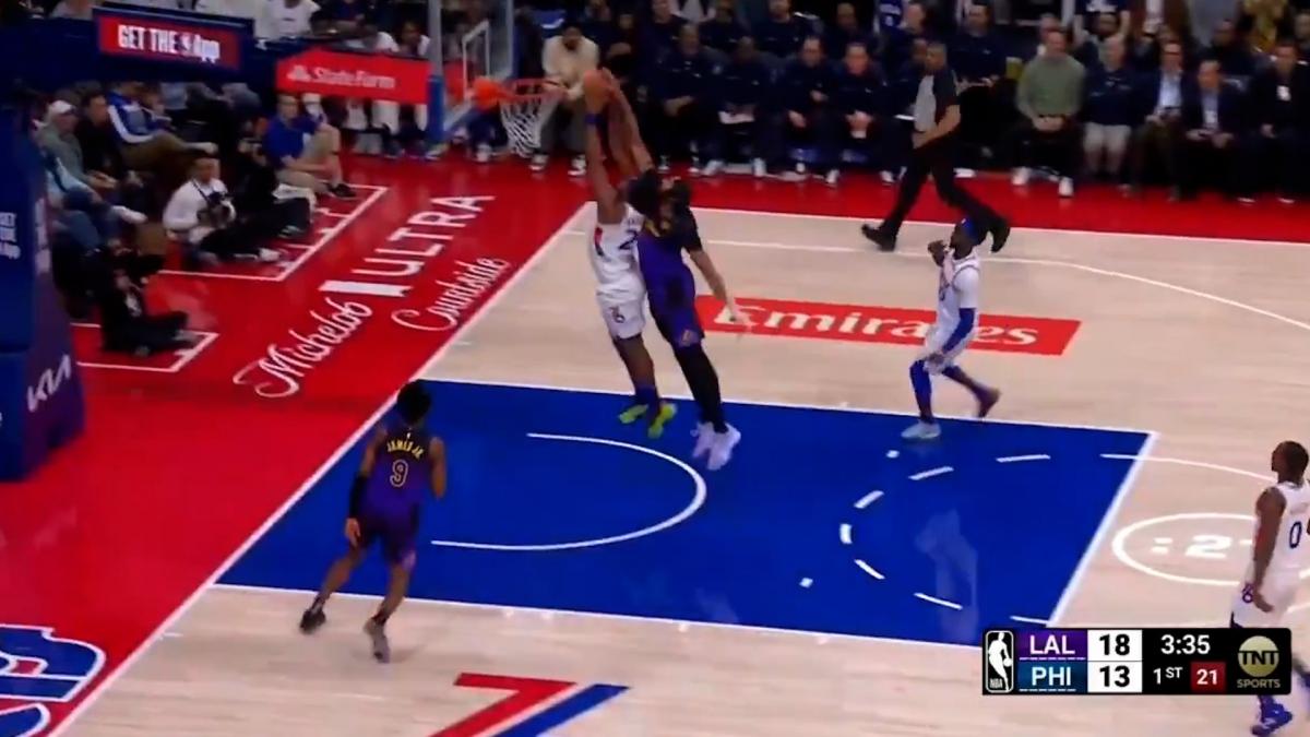 Yabusele le robó un balón a Bronny James para acabar machacando el aro de forma salvaje.